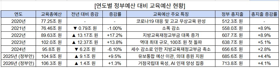 *2025년 추경을 통해 실제 사용된 교육예산은 103조원입니다.